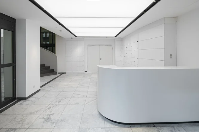 Das denkmalgeschützte Börsengebäude in Frankfurt wird heute sowohl von der Deutschen Börse AG als auch von der IHK genutzt. In den Flächen der Deutschen Börse sollen in zwei Bauabschnitten Handels-, Büro- und Eventflächen umstrukturiert werden. Im ersten Bauabschnitt wird die Ausstellungsfläche erweitert, eine Eventfläche für anstehende Börsengänge sogenannte IPOs errichtet sowie der Auslandsaktiensaal umstrukturiert. Im zweiten Bauabschnitt wird im ehemaligen Rentenaktiensaal ein Konferenzzentrum errichtet. Gleichzeitig werden statische und brandschutztechnische Mängel beseitigt.