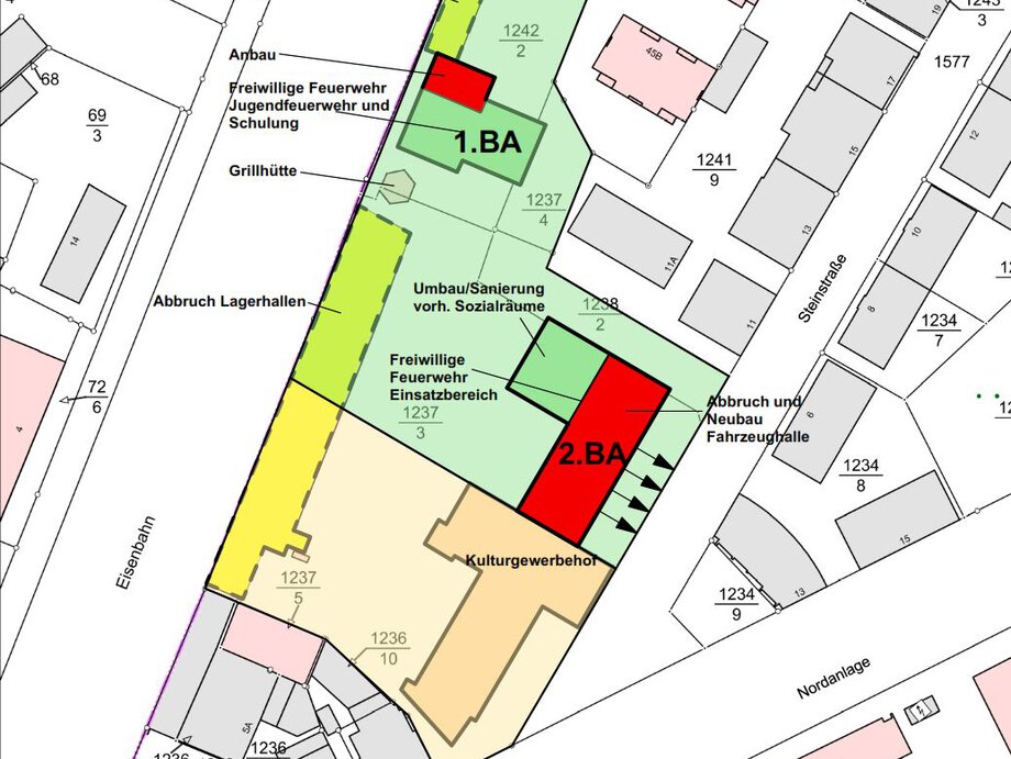 Ziel ist es nach der Baumaßnahme dem gestiegenen Raumbedarf und dem aktuellen Stand der Technik zu entsprechen. Zu dem geplanten Bauvorhaben zählen der Abbruch der abgängigen Bahndammhallen und des Vereinsheims, sowie umfassende Umbau-, Sanierungs-, und Neubaumaßnahmen an der Fahrzeughalle und dem Atemschutzgebäude.