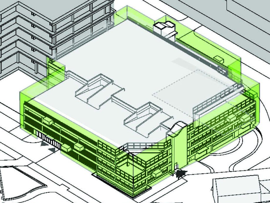 Die TU Darmstadt plant die Modernisierung des Parkhauses der TU an der Nahtstelle zwischen Institutsgebäude und Wohnbebauung des Martinviertels. Das Parkhaus soll eine immergrüne, bodengebundene Fassadenbegrünung erhalten; ein Aufstieg und Beklettern durch Unbefugte soll dabei nicht möglich sein. Im Rahmen der Planung ist außerdem zu untersuchen, ob Rankhilfe und/oder Unterkonstruktion auch als Absturzsicherung für Personen und als Anprall- und Durchfahrtschutz für Fahrzeuge aus den Pkw-Verkehrsflächen innerhalb des Parkhauses herangezogen werden können. Weiterhin soll Oberhalb des obersten Parkdecks (3.OG) soll eine neue Überdachung als Witterungsschutz gegen Regen, Schnee, Sonneneinstrahlung und Hagel errichtet werden. Zusätzlich sind auf der neuen Dachfläche Photovoltaikelemente zu errichten, die Einspeisung der gewonnenen elektrischen Energie erfolgt in das betriebseigene Stromnetz. Der prozentuale Anteil der gleichmäßig in einem Photovoltaik Element verteilten Photozellen ist so zu wählen, dass auf eine künstliche Beleuchtung der Park- und Verkehrsflächen unterhalb der neuer Dachkonstruktion durch einen ausreichenden Eintrag von Tageslicht verzichtet werden kann. Weiterhin sollen im westlichen Teil des Erdgeschosses des Parkhauses Teile der bestehenden PKW Stellplätze zu Fahrradstellplätzen umgenutzt werden. Der Zugriffschutz von außen soll über die neu zu errichtende Konstruktion der Fassadenbegrünung erfolgen. Die Öffnung des Zugangs zu den Fahrradstellflächen ist aktuell über elektronische Kartenleser vorgesehen. Die Lage eines Lesegerätes ist mit der Annäherung durch Radfahrende abzustimmen. Die Erschließung soll über eine außenliegende Rampe vor der Fassade West erfolgen, hierbei ist der vorhandene Bewuchs im Planungsprozess zu berücksichtigen.