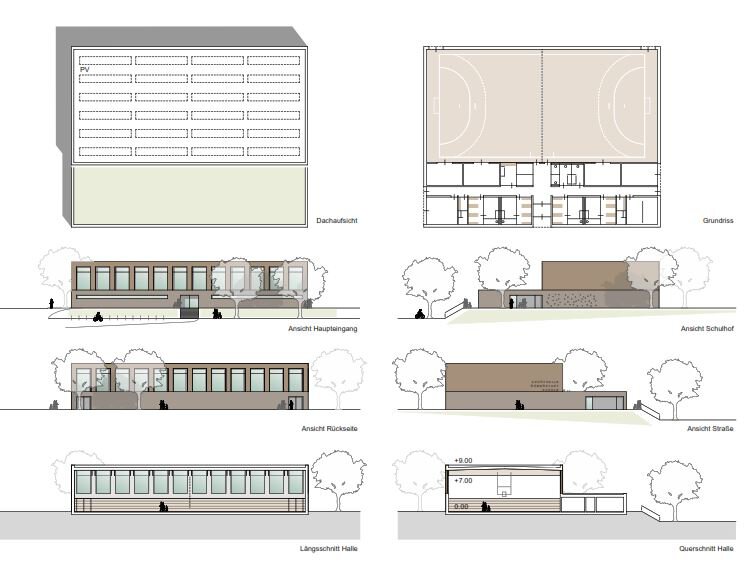 Im ersten Bauabschnitt wurde auf dem Grundstück der Römerstadtschule eine 4-zügige Grundschule neu errichtet. Dabei wird der Schulhof auf ca. der Hälfte der Grundstücksfläche neu angelegt. Die vorliegende Aufgabe beinhaltete den 2. Bauabschnitt, den Neubau einer Sporthalle und somit die gesamte Fertigstellung der Schule auf dem Grundstück. Die barrierefreie Zweifeldturnhalle soll im Passivhausstandard und mit Photovoltaikanlage errichtet werden. Die Leitlinien zum wirtschaftlichen Bauen 2021 der Stadt Frankfurt am Main (www.energiemanagement.stadt-frankfurt.de) sind den Planungen zugrunde zu legen und in ihrer sinnhaften Anwendbarkeit mit dem Auftraggeber abzustimmen. Die Turnhalle soll außerhalb der Schulnutzung auch von Vereinen genutzt und separat zugänglich sein. Eine Versammlungsstätte soll nicht ausgebildet werden. Im ersten Schritt ist der Abbruch der bestehenden Schulgebäude durchzuführen. Für die abzubrechenden Gebäude werden durch den AG Gutachten hinsichtlich der Schadstoffbelastung eingeholt. Durch den Objektplaner ist der Rückbau zu planen, ein entsprechender Abbruchantrag bei der Bauaufsicht einzureichen, mitten eines römischen Tempelbezirkes befindet. Die archäologischen Grabungen werden federführend durch das Denkmalamt erbracht, über die Dauer der Grabungen kann man im Vorfeld keine Aussage treffen, man geht aber von einer Mindestdauer von 15 Monaten aus. Für die Objektplanung sind die Leistungen Vergabe und eine reduzierte Bauüberwachung der zugehörigen Erdarbeiten zu erbringen. Diese Leistungen werden gesondert honoriert. Auf dem Grundstück wurde ein neues Schulgebäude errichte, welches im April 2022 in Betrieb genommen wurde. Die Maßnahmen finden also während des Schulbetriebs statt. Die Zufahrt zum Grundstück über den über einen Wendehammer und die Straße In der Römerstadt. Für die Bautätigkeit ist mit erschwerten, beengten Verhältnissen bei Zufahrt und Anlieferungen zu rechnen. Es gilt außerdem einen alten Baumbestand zu schützen, dadurch verringern sich die Flächen für eine Baustelleneinrichtung.