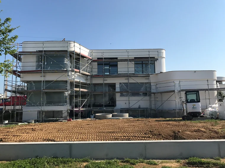 Im Rahmen eines geschlossenen Wettbewerbes wurde das Büro Mehrfeld Architekten mit der Errichtung von mehreren Villen am Rande von Frankfurts neuestem Stadtteil Riedberg beauftragt. Auf dem Areal entstanden 30 Villen nach festgelegten Gestaltungsmerkmalen.